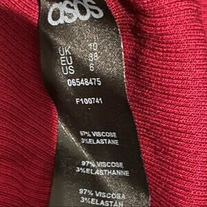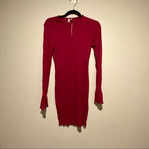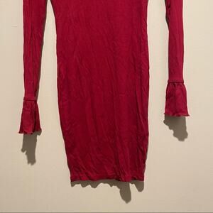 ASOS Mini Ribbed Flutter Cuff Long Sleeve Oxblood Bodycon Mini Dress Crewneck