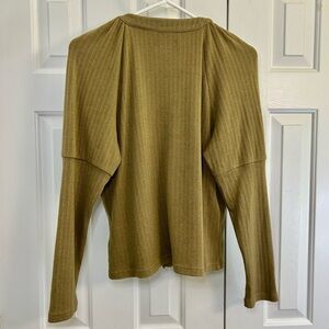 Anthropologie Olive Green V-Neck Snap Front Long Sleeve Top Size XL