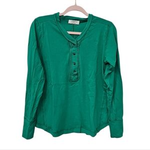 New Zenana Green Henley Top Size L Long Sleeve Button Down