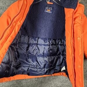 The Children's Place Toddler Boys Jacket in size 3T is a hooded orange jacket made of 100% polyester, perfect for keeping little boys warm during the winter season. It features long sleeves, a zip closure for easy wear, and is machine washable for convenience. The jacket is designed with a boy character theme, making it suitable for casual occasions. With its basic style and polyester insulation material, this jacket combines functionality with a playful design that will keep your little one both stylish and comfortable.