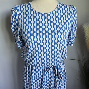 Boden New Moroccan Blue Geo Azure Knot Detail Jersey Knit Dress Womens Size 8