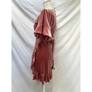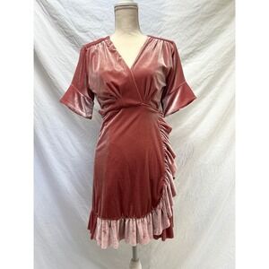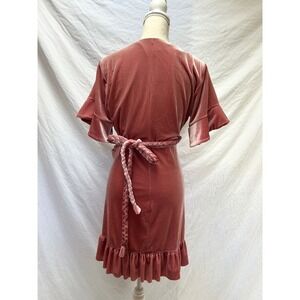 Keywords: MISA Los Angeles, velvet dress, ruffle dress, mini dress, wrap dress, pink dress, braided belt, party dress, cocktail dress, women's dress, V-neck dress, flutter sleeves, special occasion, date night, boho chic