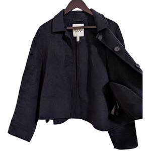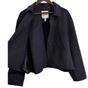 COS Navy Wool Blend Cropped Boxy Jacket Coat Size L