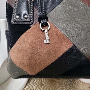 Beautiful NWOT FOSSIL patchwork bag. Made of fine pebbled leather and suede.