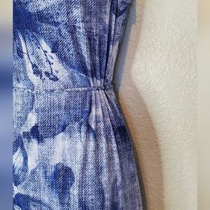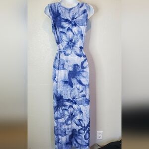 Chico's Blue & White Floral Sleeveless Maxi Sundress Size Small Side Leg Slits