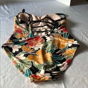 This eye-catching one-piece bodysuit features a vibrant red and orange color palette, perfect for making a statement. The bustier-style top with molded cups offers a flattering fit, while the classic cut bottom ensures comfort and style. Ideal for adding a pop of color to any occasion.