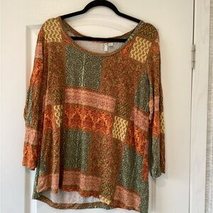 Cato Multicolor Patchwork Long Sleeve Top size 18/20W EUC