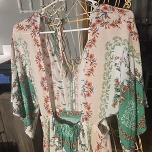 Embrace elegance with this stunning floral maxi dress. Featuring a beautiful green and white pattern. Very Boho, beautiful wide sleeves, cutouts at waist and side slits on both sides. Great for Spring or Summer, vacation or beach or just around town. the print is gorgeous and the vibrant green is stunning! It's perfect for any occasion.