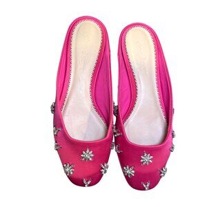 Elegant and sophisticated, these pink satin Cinq a Sept Callie mules feature rhinestone embellishments for a chic look. Perfect for refined styling and special outings.