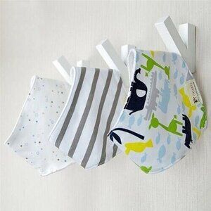 New Cotton Set Of 3 Baby Boy Bibs Bib Blue Animal Stars Stripes Snap Back