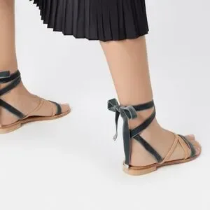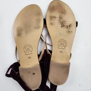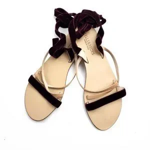 Bells & Becks Italy Velvet Leather Strappy Sandals Maroon Open Toe 8.5 Tie Ankle