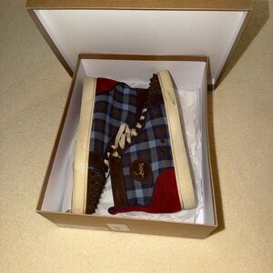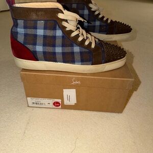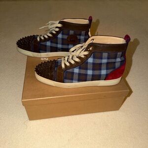 Christian Louboutin Blue and Brown Plaid Sneakers