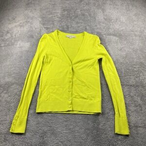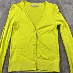 LOFT V-Neck Cardigan Sweater Womens XSP Petite Neon Yellow