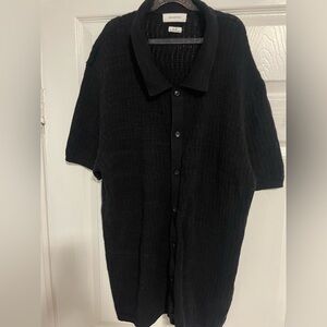 Stylish black button down shirt. Short sleeves. Perfect for casual wear.