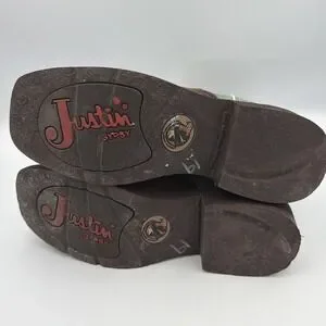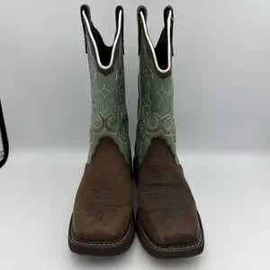 Justin Boots Women 7.5 B Gypsy Green Leather Square Toe Country Equestrian L2904