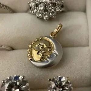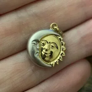 14k solid gold two tone puffy reversible sun moon face celestial pendant 3d