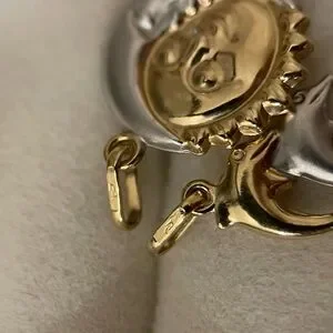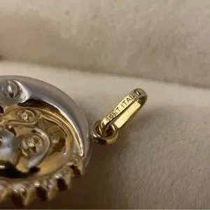 Vintage Italian designer 14k solid gold double sided puffy reversible sun moon face hollow pendant for necklace choker or bracelet. Would go well with both yellow and white gold chains