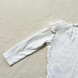 5/$18 H&M Baby Girl White Cotton Long Sleeve Ruffle Basic Layering Top Tee 9–12M