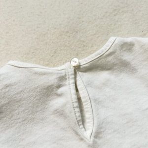 A sweet white long-sleeve cotton jersey top from H&M featuring soft ruffle details over the shoulders. Designed with a small keyhole opening and button at the back of the neck for easy dressing. This top originally came in a 3-piece set with matching shorts and tights (available in separate listings), making it perfect for coordinated family or sibling outfits. Only worn a couple of times. Please refer to photos for the minor imperfections it came with. Excellent used condition otherwise.
