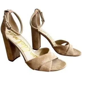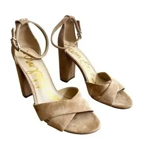 Sam Edelman Yancy Ankle Strap Sandal Block Heel In Oatmeal Tan Womens 9.5