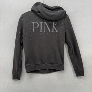 PINK Victoria's Secret Rhinestone Zip Up Hoodie Lightweight Sweatshirt Black XS