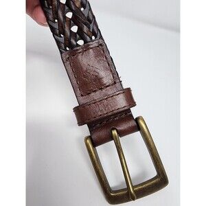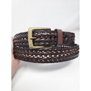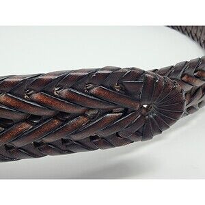 Mens Columbia Fully Adjustable Braided Casual Leather Belt 44 Cognac Brown Woven