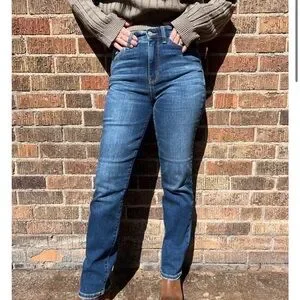 JUDY BLUE HIGH WAIST CONTRAST WASH THERMAL STRAIGHT - MEDIUM DARK jeans