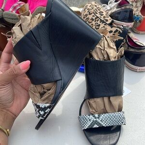 Snake Skin and Black leather wedges