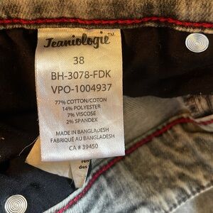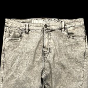 BAUHAUS W 38” grey acid wash slim fit front zip back leather logo 31.5” inseam