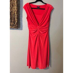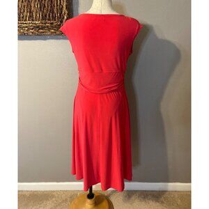 Chaps Ralph Lauren A Line Midi Dress Large L Coral Orange Sleeveless Washable