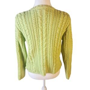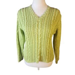 J. Crew Cable Knit Green Sweater V-Neck Women's Medium Heavy