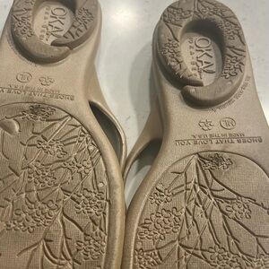 Stylish tan sandals with sparkling starfish detail. Perfect for summer days.
