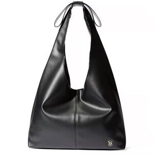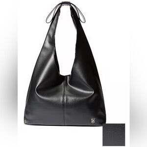 Victoria's Secret Sleek Black Hobo Tote Bag Faux Leather NEW