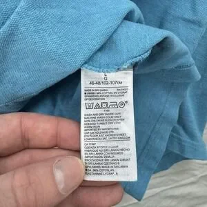 Labels and codes: Banana Republic neck label with size L and Made in Sri Lanka; inner care label listing 96% cotton and 4% lycra spandex.