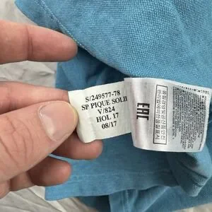 Notes: Pre-owned solid stretch polo with light fabric softening and wrinkling from storage as shown in photos.