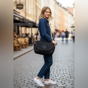 Stylish Tory Burch baby bag. Spacious with adjustable strap. Perfect for moms on the go.