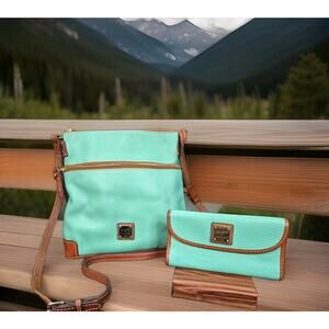 Dooney & Bourke Pebble Grain Crossbody Purse, Green Leather With Matching Clutch