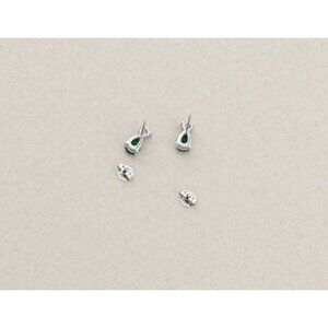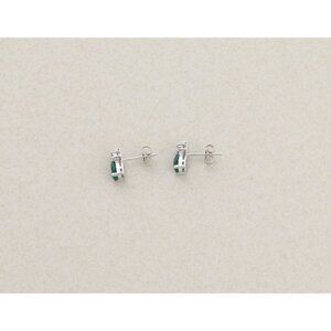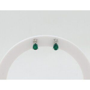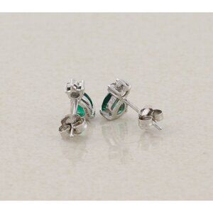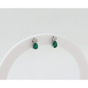 14k White Gold Lab Created Emerald & Diamond Earrings Stud Post Earrings 3/8"