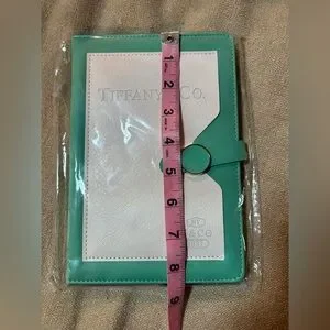 Chic leather accessory by Tiffany & Co. in cream and green. Features a sleek ring detail. NWOT. Beautiful and elegant. Unused.