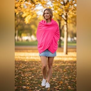 Bright pink wrap featuring stylish grommet accents. Perfect for versatile styling.