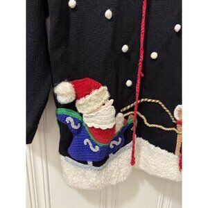 Vintage Jack B. Quick Christmas Sweater Santa Claus ugly Black Size Large