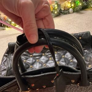 MICHAEL Michael Kors Black Quilted Shoulder Bag with Gold Studs
