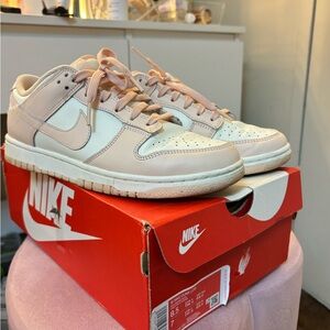 Pink and white Nike Dunk Lows