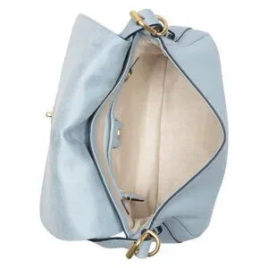 fully lined, pebbled finish, gold tone hardware, adjustable top carry handle, detachable adjustable crossbody strap, brand logo detail