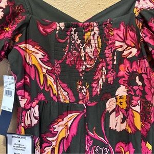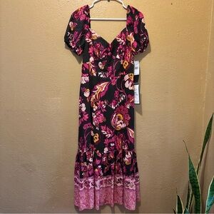 Adrianna Papell Black and Pink Floral Maxi Dress size 6