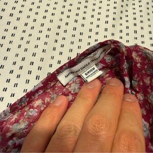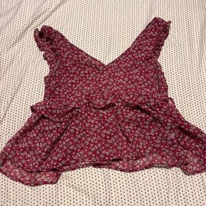 Preppy Floral American Eagle Semi-Sheer Red Summery Flowy Ruffled Shoulder Sz XL