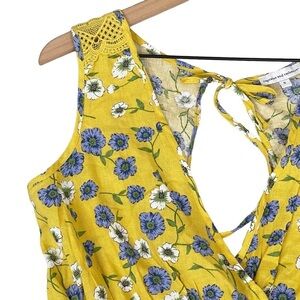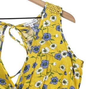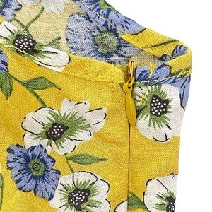 Cupcakes and Cashmere Floral Top Small Yellow Keyhole Open Back Linen Blend