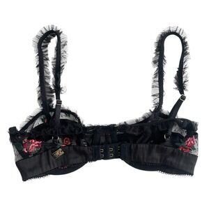 VS For Love & Lemons Sheer Black Bra Rosebud Lace Embroidered XXS Dark Coquette