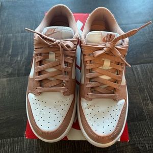 Stylish Nike women's sneakers. Features a white base with tan accents. Perfect for casual wear.