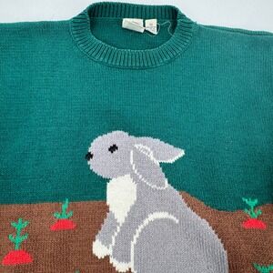 JG Hook Womens Green Rabbit Carrot Garden Knit Sweater Short Sleeve M Easter